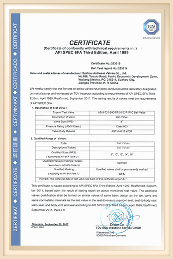 API 6FA Ball valve 8-600 WCB